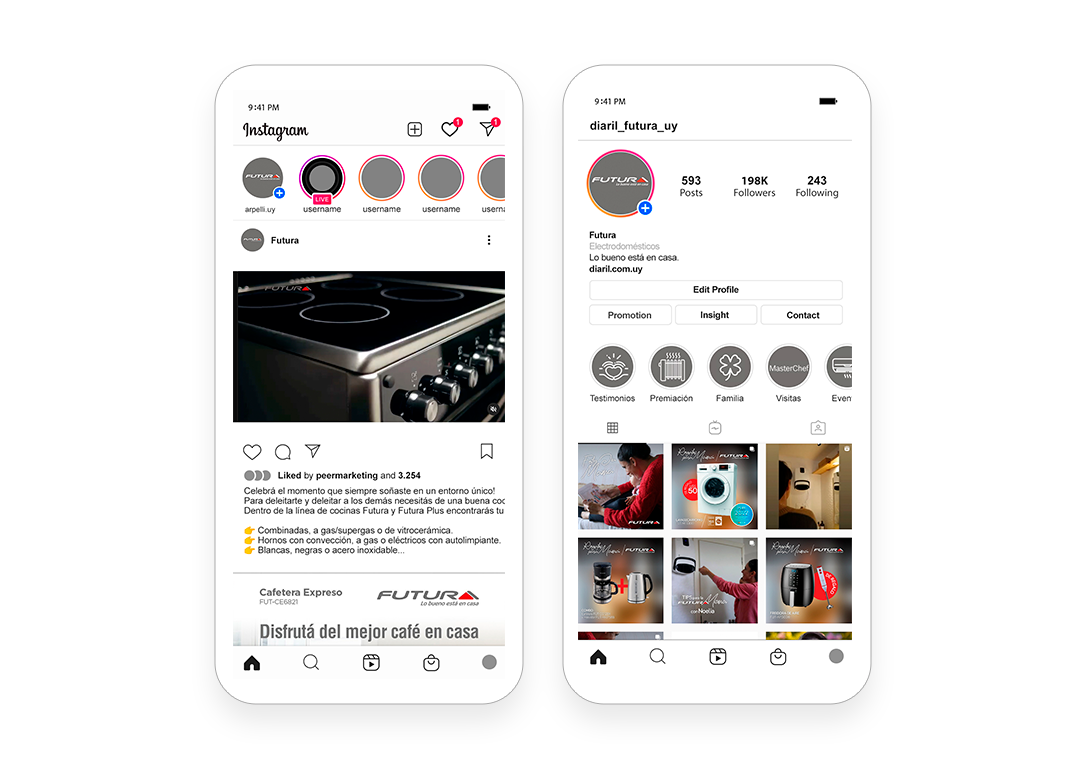 Futura es una marca Uruguaya, que pertenece al grupo DIARIL SA. Para ella trabajamos en la creación, desarrollo e implementación de la estrategia de la marca en digital y medios tradicionales. En medios digitales nos encargamos de sus campañas de performance y estrategia de social media y en medios tradicionales realizamos plan de pauta en tanda y planificación de sponsoreo. Implementamos diversas campañas: Futura Mamá, Temporada de aires, entre otras.