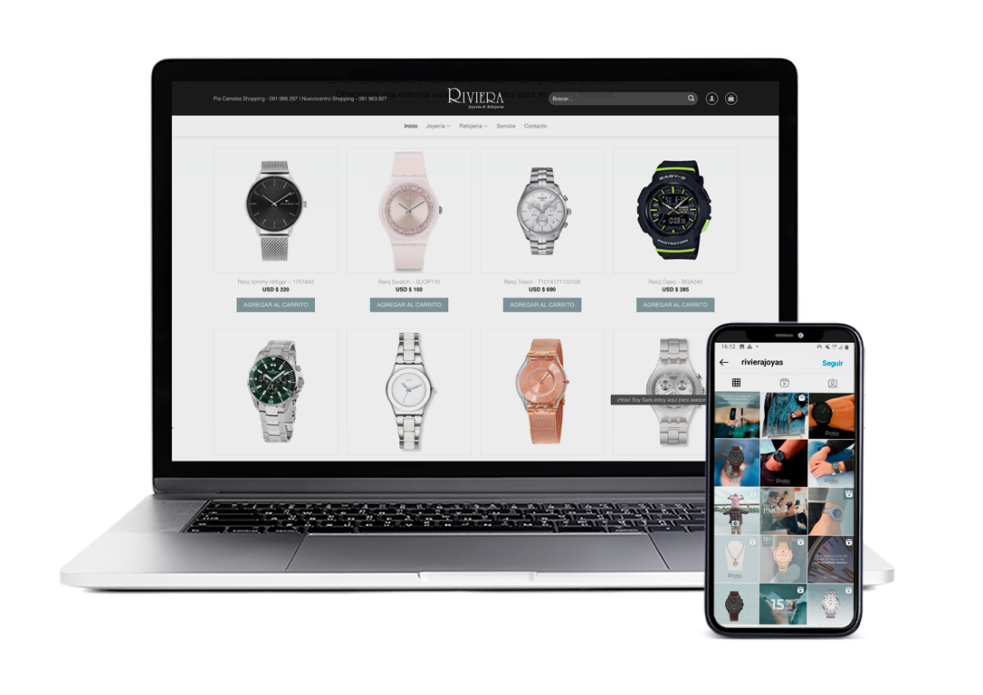 Riviera Joyas es una joyería y relojería con presencia en shopping, destacada por su excelente atención y extensa variedad en modelos de relojería para mujeres y hombres. Siendo representantes oficiales de las marcas más importantes de relojería del mundo. Desarrollamos la marca en digital desde sus inicios, creando manual de marca y tienda online,